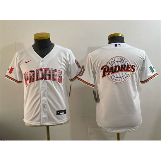 Youth San Diego Padres Team Big Logo White Mexico Cool Base Stitched Baseball Jersey
