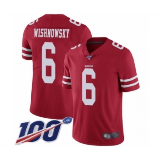 >Youth San Francisco 49ers #6 Mitch Wishnowsky Red Team Color Vapor Untouchable Limited Player 100th Season Football Jersey