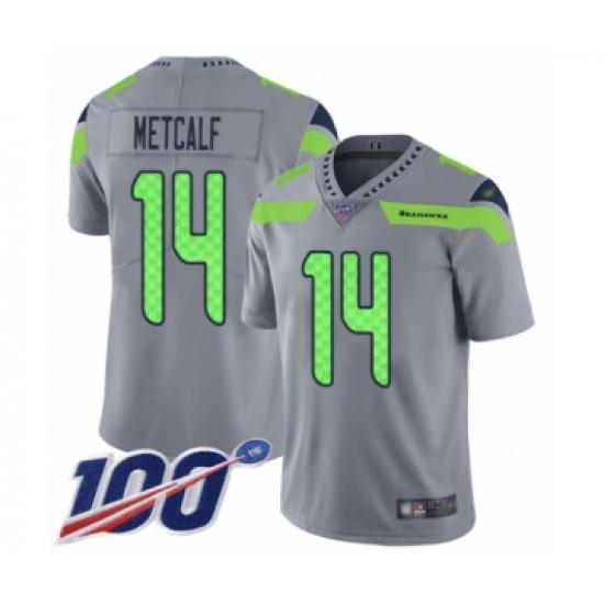 >Youth Seattle Seahawks #14 D.K. Metcalf Limited Silver Inverted Legend 100th Season Football Jersey