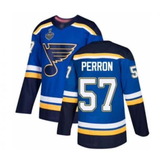 Youth St. Louis Blues #57 David Perron Authentic Royal Blue Home 2019 Stanley Cup Final Bound Hockey Jersey