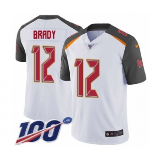 >Youth Tampa Bay Buccaneers #12 Tom Brady White Vapor Untouchable Limited Player 100th Season Football Jersey