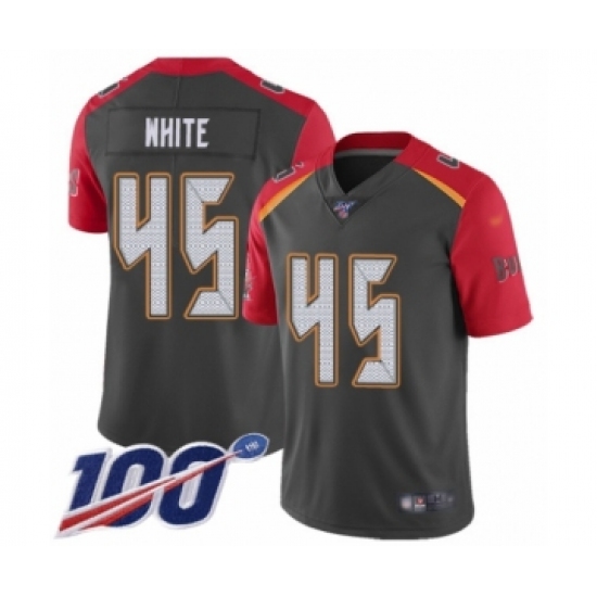 >Youth Tampa Bay Buccaneers #45 Devin White Limited Gray Inverted Legend 100th Season Football Jersey
