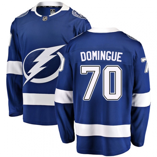 >Youth Tampa Bay Lightning #70 Louis Domingue Fanatics Branded Royal Blue Home Breakaway NHL Jersey