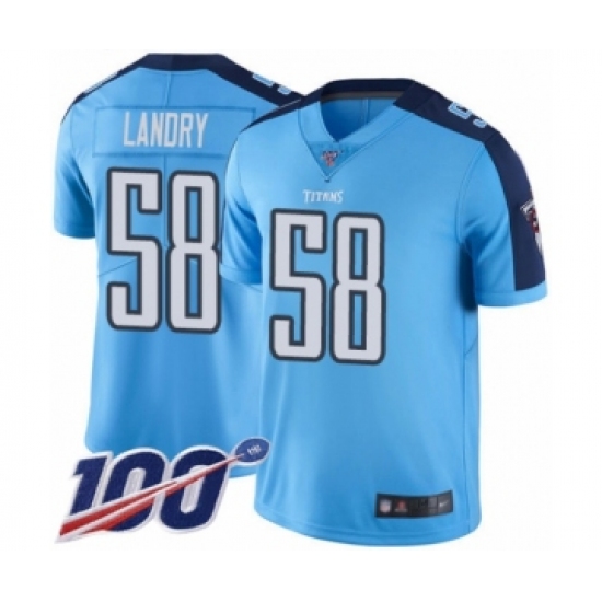 >Youth Tennessee Titans #58 Harold Landry Limited Light Blue Rush Vapor Untouchable 100th Season Football Jersey