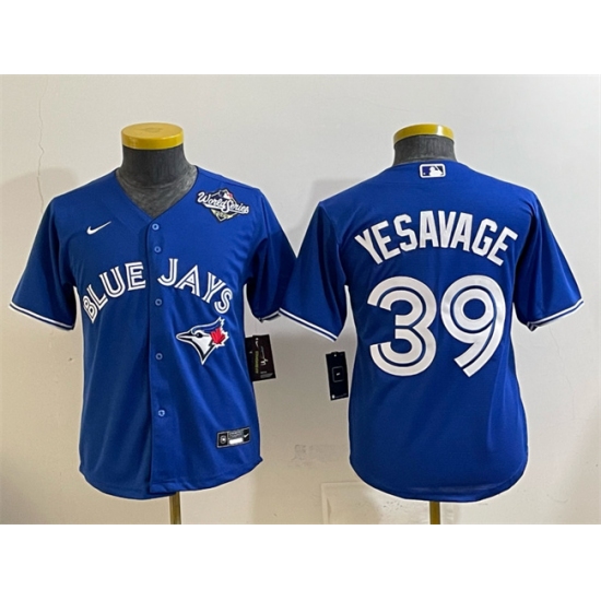 >Youth Toronto Blue Jays #39 Trey Yesavage Royal 2025 World Series Cool Base Stitched Baseball Jersey