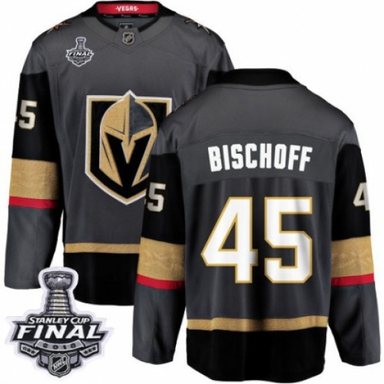 Youth Vegas Golden Knights #45 Jake Bischoff Authentic Black Home Fanatics Branded Breakaway 2018 Stanley Cup Final NHL Jersey