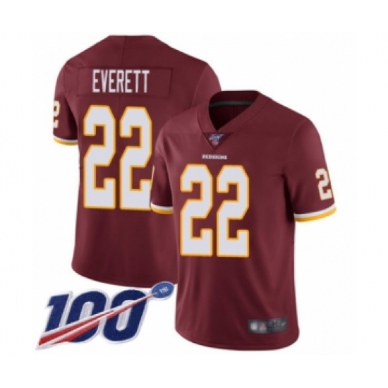Youth Washington Redskins #22 Deshazor Everett Burgundy Red Team Color Vapor Untouchable Limited Player 100th Season Football Jersey