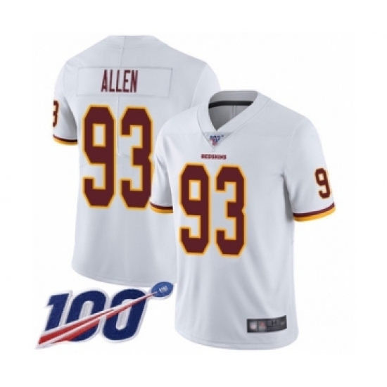 Men's Washington Redskins #93 Jonathan Allen White Vapor Untouchable Limited Player 100th Season Football Jersey