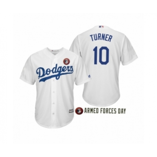 >Men's 2019 Armed Forces Day Justin Turner #10 Los Angeles Dodgers White Jersey