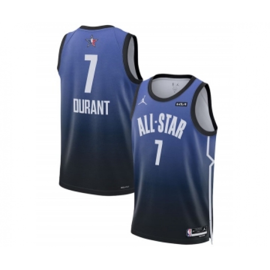 >Men's 2023 All-Star #7 Kevin Durant Blue Game Swingman Stitched Basketball Jersey