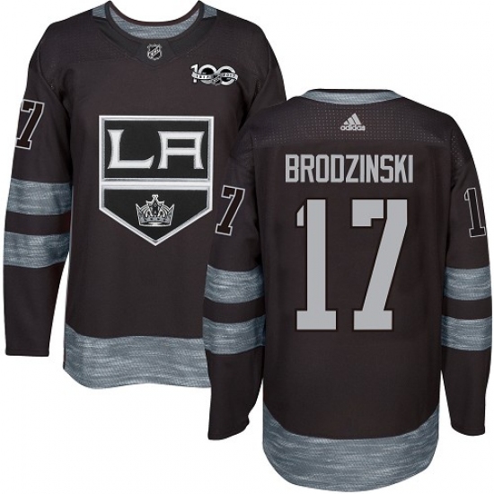 Home>NHL>Los Angeles Kings>Jonny Brodzinski>Men's Adidas Los Angeles Kings #17 Jonny Brodzinski Authentic Black 1917-2017 100th Anniversary NHL Jersey