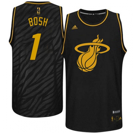 Men's Adidas Miami Heat #1 Chris Bosh Swingman Black Precious Metals Fashion NBA Jersey
