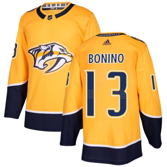 Home>NHL>Nashville Predators>Nick Bonino>Men's Adidas Nashville Predators #13 Nick Bonino Premier Gold Home NHL Jersey