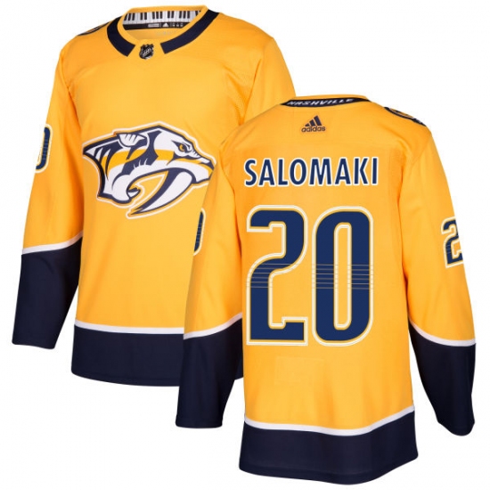 Home>NHL>Nashville Predators>Miikka Salomaki>Men's Adidas Nashville Predators #20 Miikka Salomaki Premier Gold Home NHL Jersey