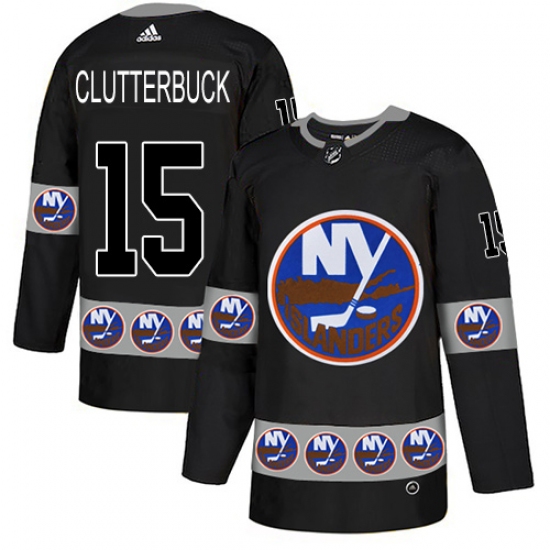 >Men's Adidas New York Islanders #15 Cal Clutterbuck Authentic Black Team Logo Fashion NHL Jersey
