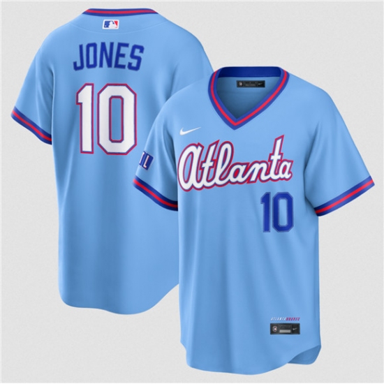 Men's Atlanta Braves #10 Chipper Jones Powder Blue 2026 City Connect Stadium Stitched Baseball Jersey