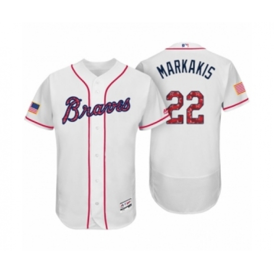 >Men's Atlanta Braves #22 Nick Markakis White 2017 Independence Day Flex Base Jersey