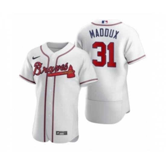 Men's Majestic Atlanta Braves #31 Greg Maddux White Home Flex Base Authentic Collection MLB Jersey