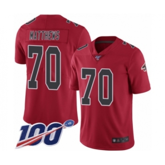 Men's Atlanta Falcons #70 Jake Matthews Limited Red Rush Vapor Untouchable 100th Season Football Jersey