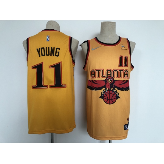 >Men's Atlanta Hawks 2021-22 City Edition #11 Trae Young Orange Stitched Basketball Jersey