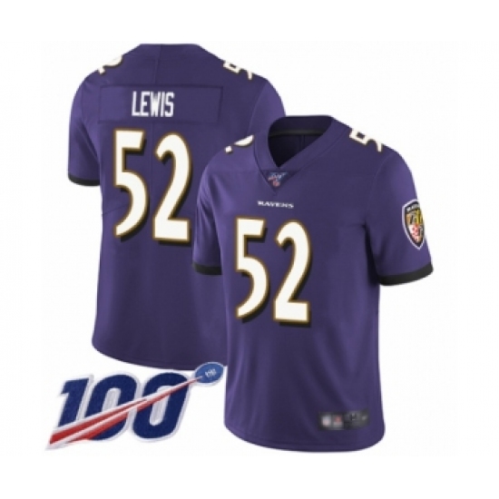 Men's Baltimore Ravens #52 Ray Lewis Purple Team Color Vapor Untouchable Limited Player 100th Season Football Jersey