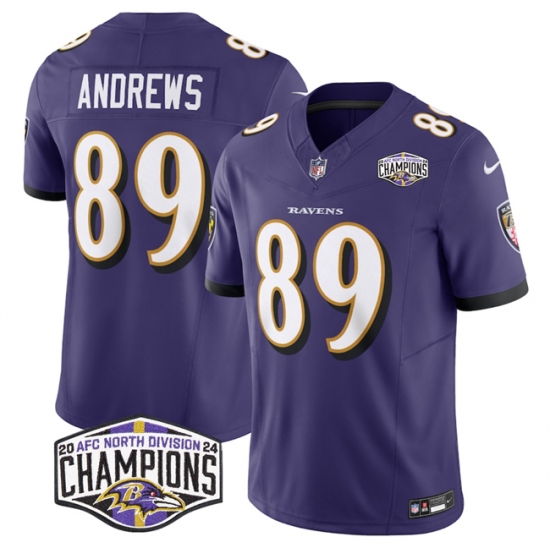 Men's Baltimore Ravens #89 Mark Andrews Purple F.U.S.E 2024 AFC North Division Champions Vapor Limited Football Jersey