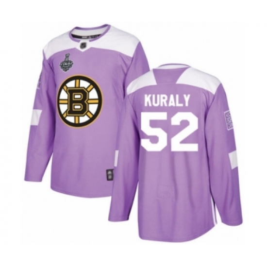 Men's Boston Bruins #52 Sean Kuraly Authentic Purple Fights Cancer Practice 2019 Stanley Cup Final Bound Hockey Jersey
