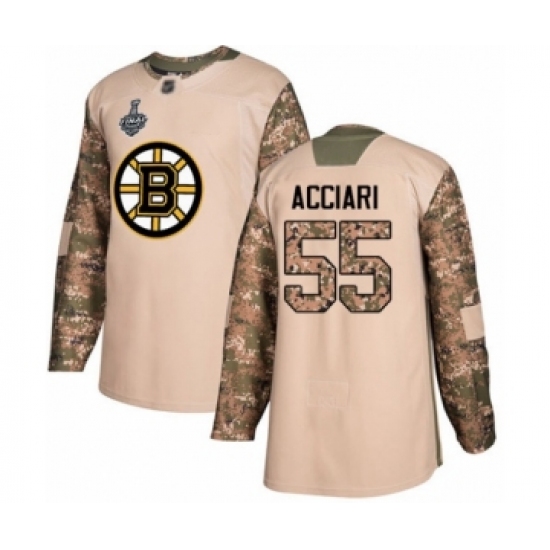 Men's Boston Bruins #55 Noel Acciari Authentic Camo Veterans Day Practice 2019 Stanley Cup Final Bound Hockey Jersey
