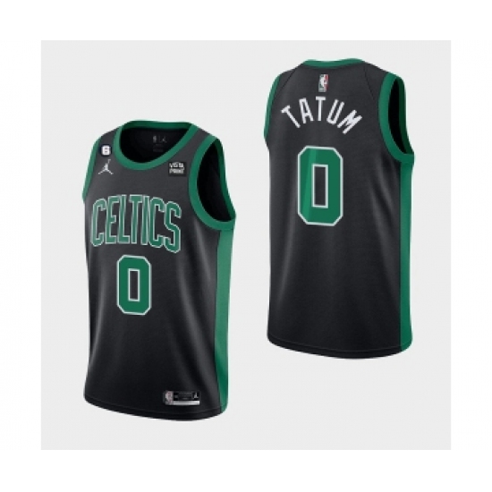 Men's Boston Celtics #0 Jayson Tatum Black No.6 Patch Stitched Basketball Jersey