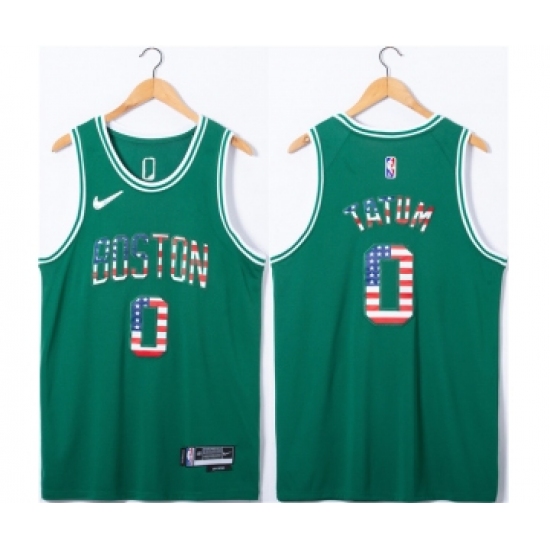 Men's Boston Celtics #0 Jayson Tatum USA Flag Green Stitched Jersey
