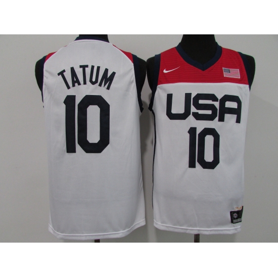 >Men's Boston Celtics #10 Jayson Tatum USA Basketball Tokyo Olympics 2021 White Jersey