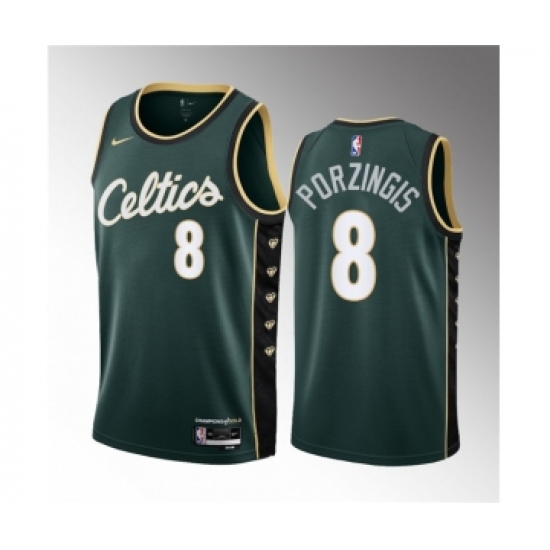 Men's Boston Celtics #8 Kristaps Porzingis Green2023 Draft City Edition Stitched Basketball Jersey