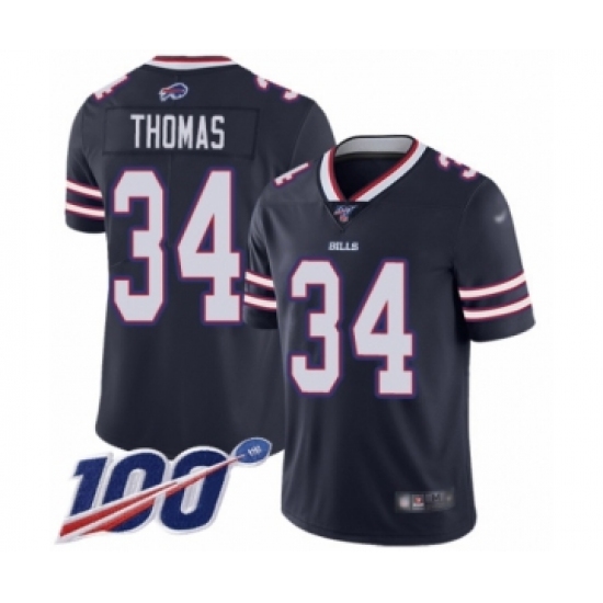>Men's Buffalo Bills #34 Thurman Thomas Limited Navy Blue Inverted Legend 100th Season Football Jersey