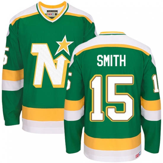Men's CCM Dallas Stars #15 Bobby Smith Authentic Green Throwback NHL Jersey