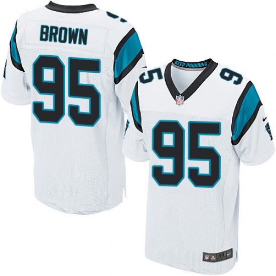 >Men's Carolina Panthers #95 Derrick Brown White Stitched NFL New Elite Jersey