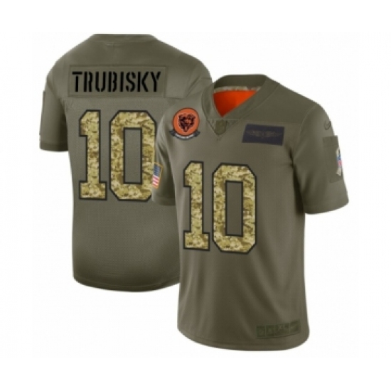 >Men's Chicago Bears #10 Mitchell Trubisky 2019 Olive Camo Salute to Service Limited Jersey