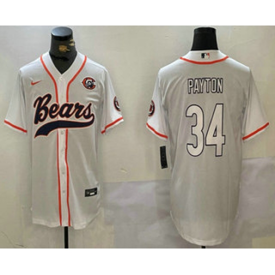Men's Chicago Bears #34 Walter Payton White Throwback With Cool Base Stitched Baseball Jersey
