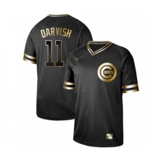 Men's Chicago Cubs #11 Yu Darvish Authentic Black Gold Fashion Baseball Jersey