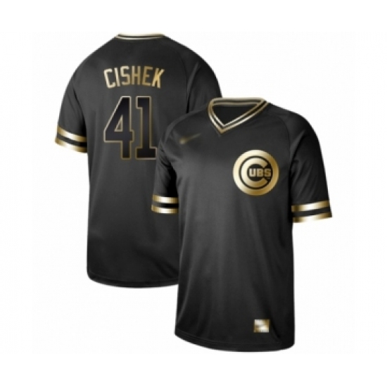 Men's Chicago Cubs #41 Steve Cishek Authentic Black Gold Fashion Baseball Jersey