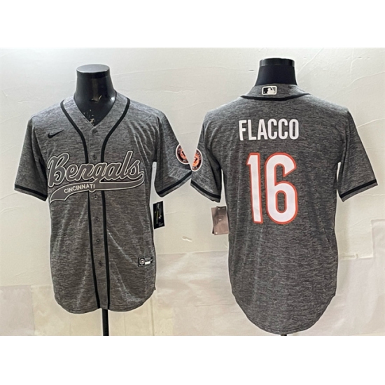 Men's Cincinnati Bengals #16 Joe Flacco Grey With Cool Base Stitched Baseball Jersey