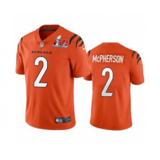 >Men's Cincinnati Bengals #2 Evan McPherson 2022 Orange Super Bowl LVI Vapor Limited Stitched Jersey