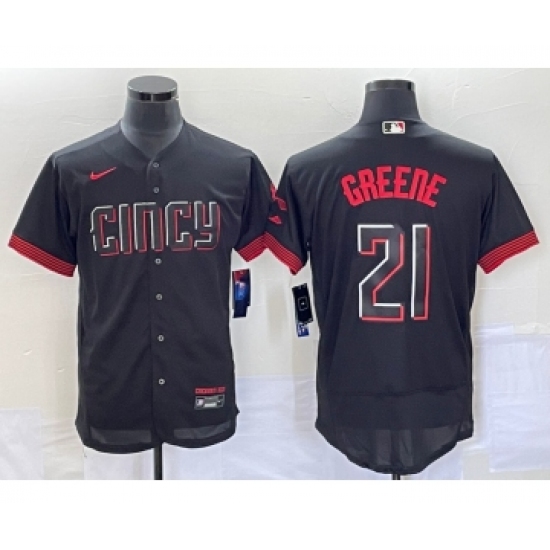 Men's Cincinnati Reds #21 Hunter Greene Black 2023 City Connect Flex Base Stitched Jersey 1