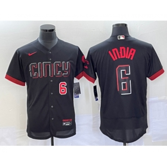 >Men's Cincinnati Reds #6 Jonathan India Number Black 2023 City Connect Flex Base Stitched Jersey 1