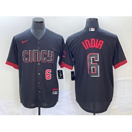 Men's Cincinnati Reds #6 Jonathan India Black 2023 City Connect Stitched Jersey1