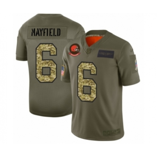 >Men's Cleveland Browns #6 Baker Mayfield 2019 Olive Camo Salute to Service Limited Jersey