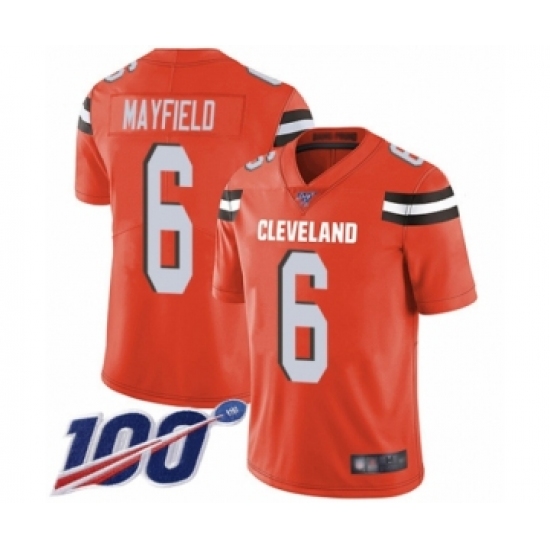 Men's Cleveland Browns #6 Baker Mayfield Orange Alternate 100th Season Vapor Untouchable Limited Player Football Jersey