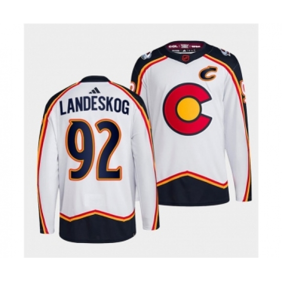 >Men's Colorado Avalanche #92 Gabriel Landeskog White 2022-23 Reverse Retro Stitched Jersey