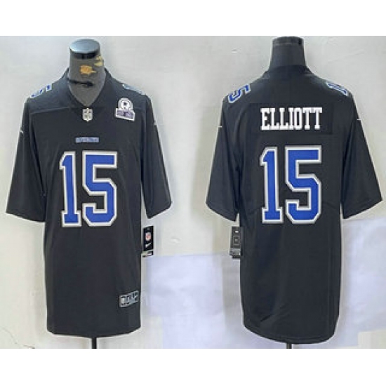 Men's Dallas Cowboys #15 Ezekiel Elliott Black Throwback With 1960 Vapor Limited Stitched Jersey