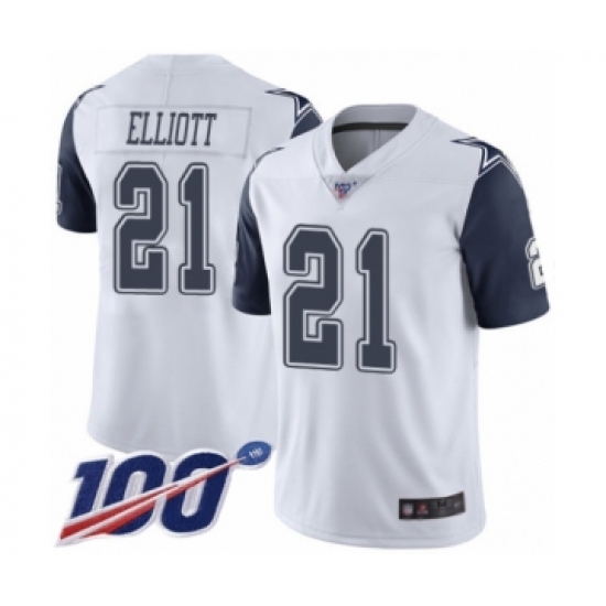 >Men's Dallas Cowboys #21 Ezekiel Elliott Limited White Rush Vapor Untouchable 100th Season Football Jersey