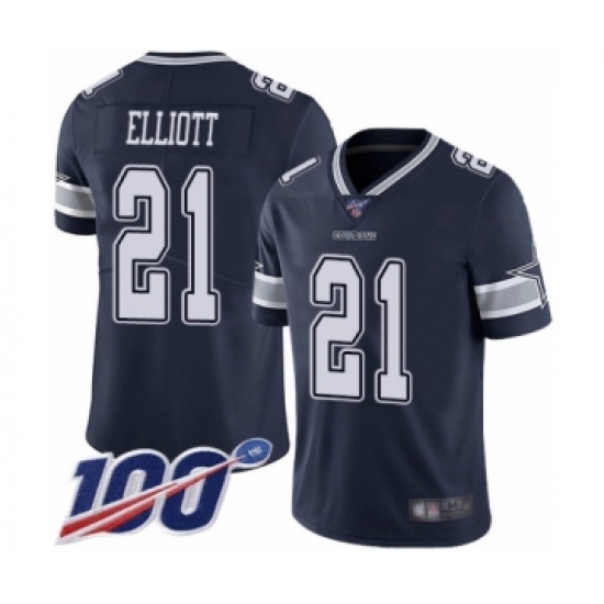 Men's Dallas Cowboys #21 Ezekiel Elliott Navy Blue Team Color Vapor Untouchable Limited Player 100th Season Football Jersey